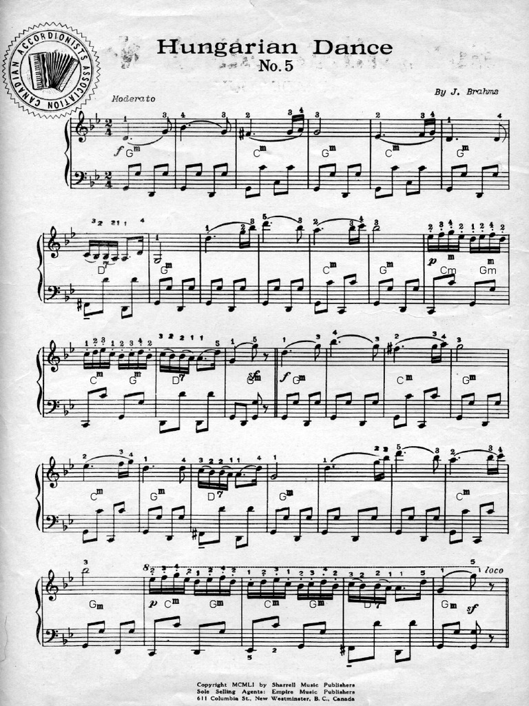 Brahms Hungarian Dance No 5 Accordion Duet Sheet Music Pdf File